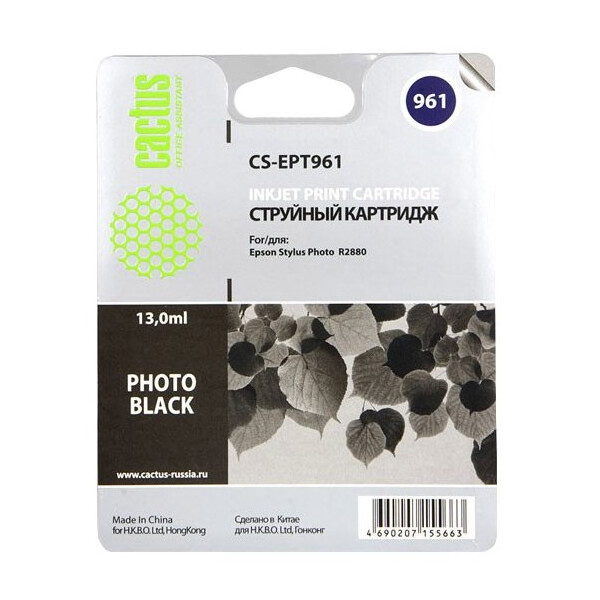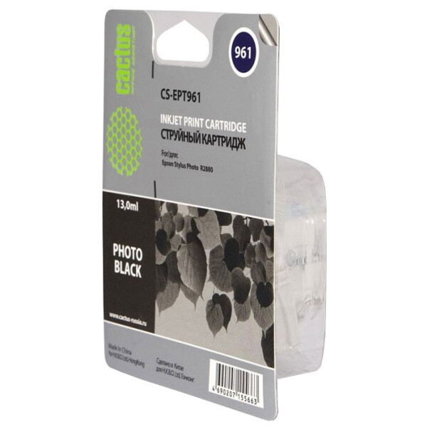Струйный картридж Cactus CS-EPT961 является полным аналогом оригинального картриджа Epson C13T09614010. Предназначен для использования в принтерах Epson Stylus Photo R2880.