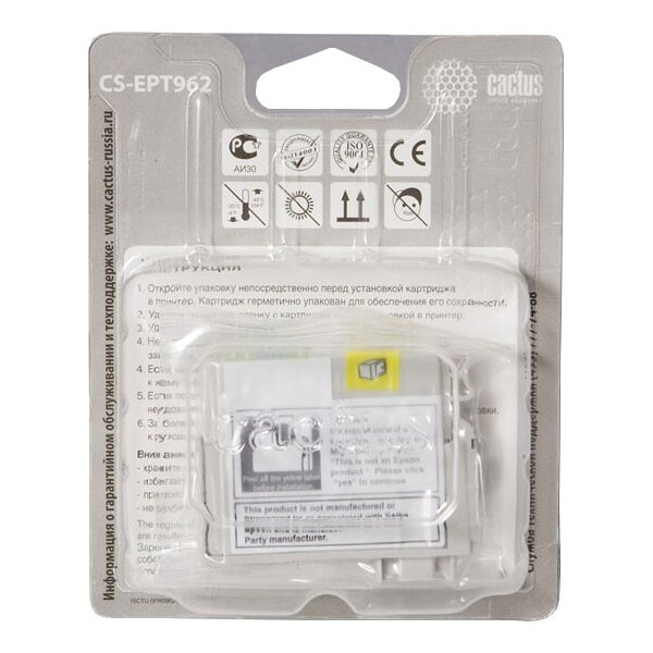 Струйный картридж Cactus CS-EPT962 является полным аналогом оригинального картриджа Epson C13T09624010. Предназначен для использования в принтерах Epson Stylus Photo R2880.
