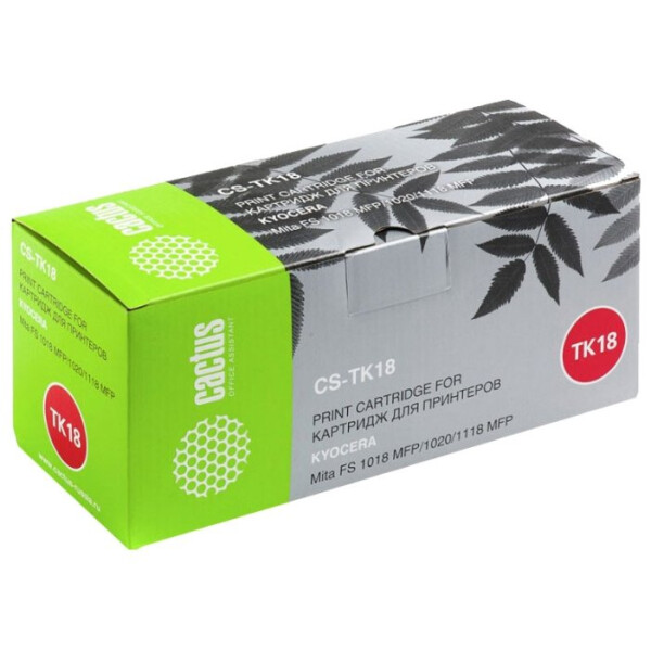 Лазерный тонер картридж Cactus CS-TK18 является полным аналогом оригинального картриджа Kyocera Mita TK-18. Предназначен для использования в принтерах Kyocera Mita FS 1018, 1018 MFP, 1020, 1020D, 1020DN, 1020DT, 1020DTN, 1118 MFP, 1118F MFP, 1118 FPD MFP, Olivetti d-Copia 18MF, Utax - CD1018.