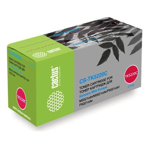 Тонер Картридж Cactus CS-TK5220C голубой, ресурс 1200страниц, для Kyocera Ecosys M5521cdn/M5521cdw/P5021cdn/P5021cdw.