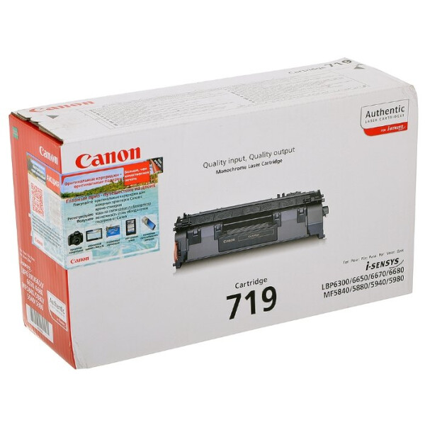 Картридж лазерный Canon 719 черного цвета оснащен чипом и разработан для моделей принтеров Canon i-SENSYS MF5840, Canon i-SENSYS MF5880, Canon i-SENSYS LBP6300dn, Canon i-SENSYS LBP6650, Canon i-SENSYS LBP6670, Canon i-SENSYS LBP6680, Canon i-SENSYS MF5940, Canon i-SENSYS MF5980.