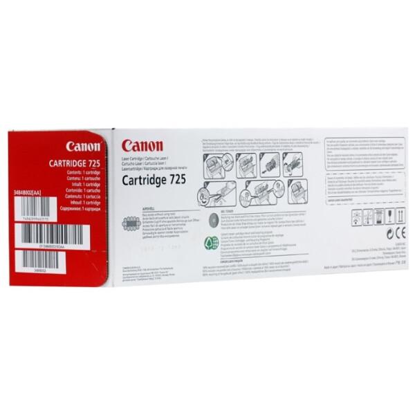 Canon 725 обладает большим объемом красок, что дает возможность произвести отпечатку приблизительно 1600 страниц.