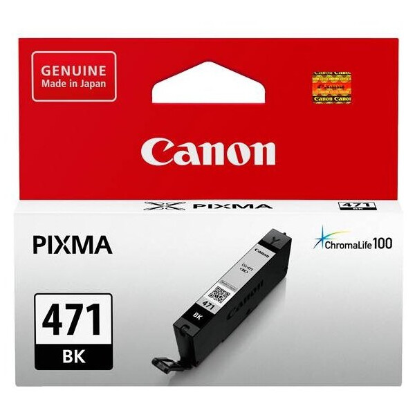 Картридж струйный Canon CLI-471BK наполнен оригинальными чернилами от бренда Canon. Цвет - черный, вставляется в слот для черно-белой печати.