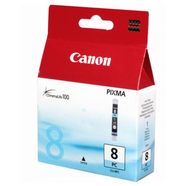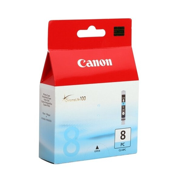 Оригинальный струйный картридж Canon CLI-8PC позволит получить до 200 отпечатков (в формате 10х15) фотографического качества. Эта чернильница с голубыми чернилами (Cyan) выполнена в соответствии с фирменным стандартом производителя ChromaLife 100, что обеспечивает минимальный размер пигмента и его долговечность на носителе.
