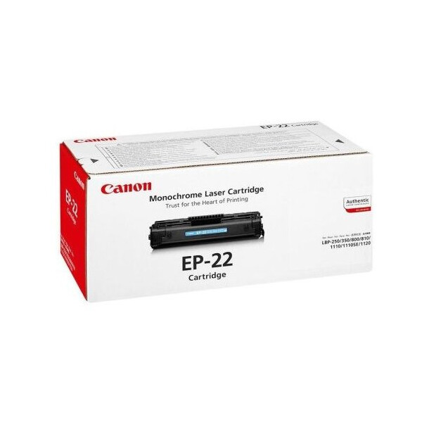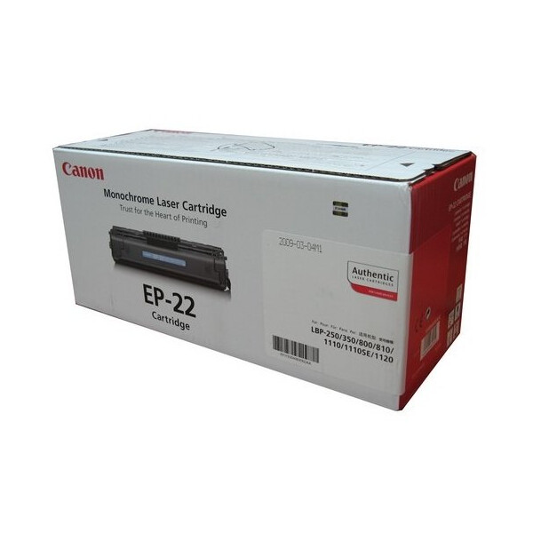 Картридж лазерный Canon EP-22 черного цвета обеспечит качественную работу принтеров Canon серии LBP. Картридж Canon EP-22 заполнен специализированным запатентованным тонером, который не будет осыпаться после распечатывания и не останется на руках. При низкой стоимости картридж имеет высокую производительность – до 2500 страниц без замены.
