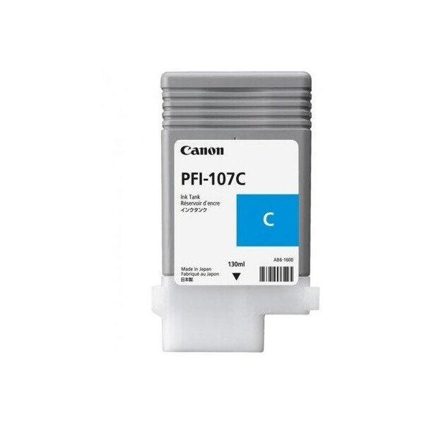 Оригинальный картридж с голубыми чернилами Canon PFI-107C для устройств струйной печати Canon iPF680, Canon iPF685, Canon iPF670, Canon iPF770, Canon iPF780, Canon iPF785. Объем картриджа составляет 130 мл.