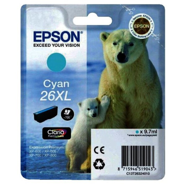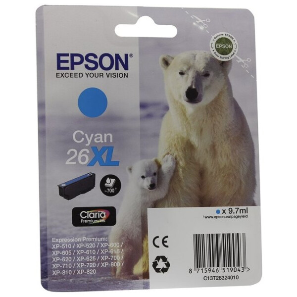Картридж EPSON 26XL (C13T26324012) голубой для Expression XP-600/605/700/800, объем 60мл.