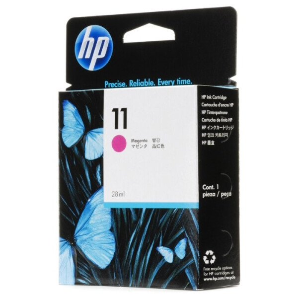 Чернильные картриджи HP 11, представляющие собой отдельные одноцветные картриджи со встроенными интеллектуальными датчиками, являются основными компонентами модульной системы подачи чернил НР и обеспечивают сверхвысокую скорость и исключительное качество печати за счёт нанесения мельчайших чернильных капель.