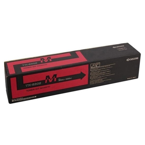 Картридж Kyocera TK-8305M с тонером пурпурного цвета для лазерного принтера, рассчитанный на 15000 страниц. Подходит для лазерных принтеров Kyocera TASKalfa 3050ci, TASKalfa 3051ci, TASKalfa 3550ci,TASKalfa 3551ci.