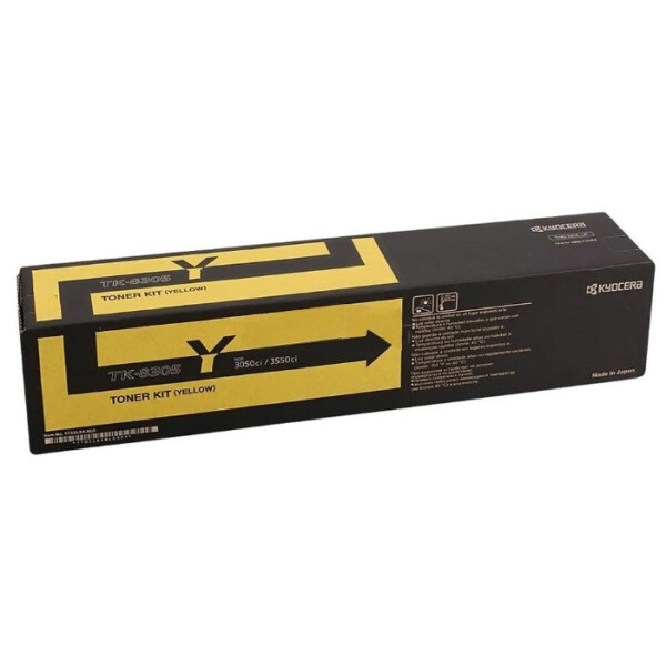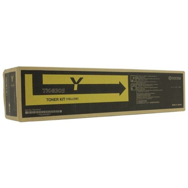 артридж Kyocera TK-8305Y с тонером желтого цвета для лазерного принтера, рассчитанный на 15000 страниц. Подходит для лазерных принтеров Kyocera TASKalfa 3050ci, TASKalfa 3051ci, TASKalfa 3550ci,TASKalfa 3551ci.