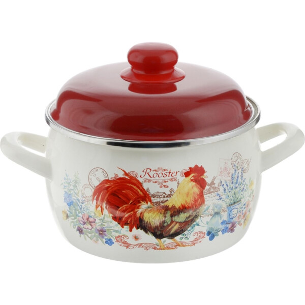Кастрюля Metrot "Золотой Петушок. Эксклюзив" выполнена из стали с эмалированным покрытием. Внешние стенки оформлены ярким рисунком. Эмалированная посуда инертна и устойчива к пищевым кислотам, не вступает во взаимодействие с продуктами и не искажает их вкусовые качества. Эмалевое покрытие, являясь стекольной массой, не вызывает аллергию и надежно защищает пищу от контакта с металлом. Кроме того, такое покрытие долговечно, оно устойчиво к механическому воздействию, не царапается и не "сходит", а стальная основа практически не подвержена механической деформации, благодаря чему срок эксплуатации увеличивается. Кастрюля оснащена крышкой с пластиковой ручкой, а также удобными боковыми ручками