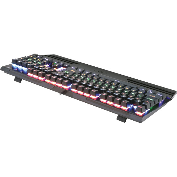 Отличное решение механической клавиатуры со стальной крышкой и подсветкой. Подставка под руки упрощает долговременную работу и придает привлекательный внешний вид. Мультимедийные кнопки реализованы через Fn функцию, как и переключение режимов подсветки, что экономит место на клавиатуре.