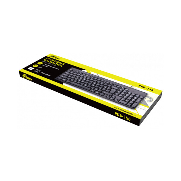 Ritmix RKB-155 Black USB - проводная клавиатура, интерфейс USB, для настольного компьютера, классическая конструкция, мембранная, клавиш: 111, дополнительных: 9, вес: 381 г.