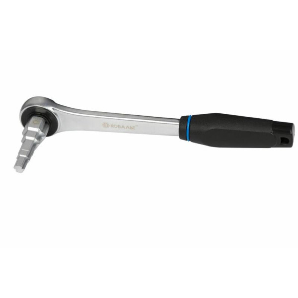 Ключ трещоточный сантехнический для ''американок'' Кобальт 244-117 предназначен для монтажа трубных соединений с накидной гайкой и внутренним шестигранником или шлицами. Изготовлен из хромванадиевой стали. Содержит трещоточную рукоятку и универсальный ступенчатый ключ 90мм с размерами 3/8'' - 1/2'' - 3/4'' - 1'' и боковой прорезью для зацепления в шлицах фитингов.