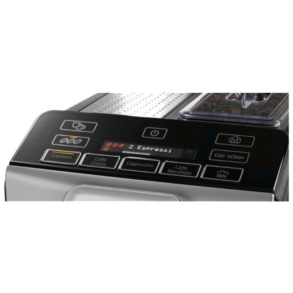 Удобная дверца на передней панели приборов позволяет с легкостью очистить поддон для капель и блок заваривания. Программа автоматического ополаскивания при выключении, включении. Выбор языка для сообщений на дисплее. Длинный провод. Принадлежности в комплекте: тест-полоска для определения жесткости воды.