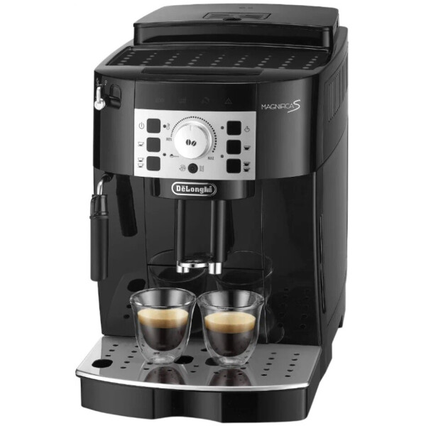 Автоматическая кофемашина DeLonghi ECAM22.115.B приготовит порцию вкусного бодрящего кофе всего за пару минут. Данная модель делает не только эспрессо, но и молочные напитки на его основе, благодаря ручному капучинатору. Кофемашина имеет специальный отсек, в который необходимо засыпать цельные или молотые обжаренные зерна. С помощью кнопок на панели управления удобно корректировать настройки, а также выбирать нужный режим. Крепость напитка можно отрегулировать поворотным переключателем, а степень помола зерен задается отдельным переключателем на самой кофемолке. Жернова кофемолки выполнены из нержавеющей стали, что гарантирует длительный срок службы. Диспенсер регулируется по высоте до 140 мм удобно использовать и маленькие чашки, и бокалы, не рискуя забрызгать прибор и столешницу. Достаточно нажать одну кнопку и через несколько мгновений вы сможете насладиться прекрасным вкусом и ароматом. При этом в приборе предусмотрена возможность приготовления сразу двух порций. Кофемашина отключается автоматически тем самым позволяет экономить электроэнергию.