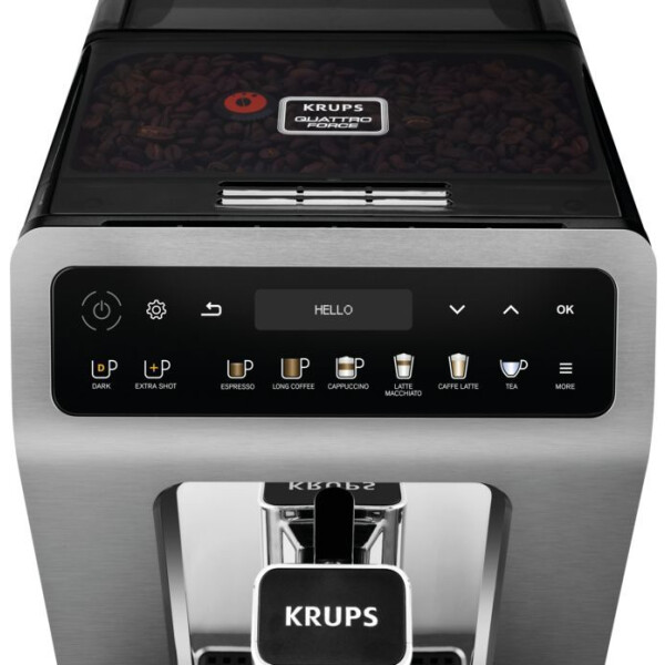 Кофемашина Krups EA894T10 выполнена в серебристом цвете. 18 встроенных рецептов различных напитков, 2 новых рецепта одной кнопкой. Новый интуитивно понятный интерфейс сочетающий цветные сенсорные кнопки и OLED дисплей.