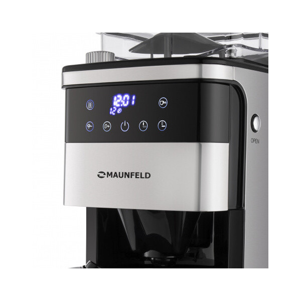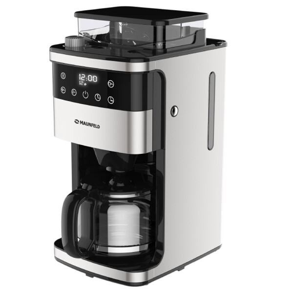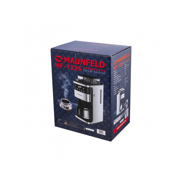 Кофемашина Maunfeld MF-723S выполнена в цвете нержавеющей стали, а корпус из пластика. Её общая мощность составляет 1050 Вт, а ёмкость контейнера для воды составляет 1.5 л. Она имеет удобное сенсорное управление и интуитивно понятный дисплей, который отобразит всю необходимую для вас информация, которая поможет вам приготовить нужный вам кофейный напиток прямо в кофейник.