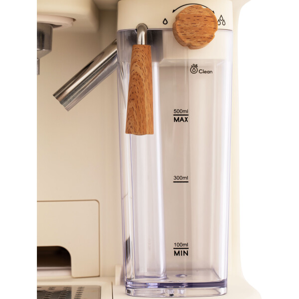 Модель оснащена съемным контейнером для воды объемом 1,5 л. и емкостью для молока 500 мл.