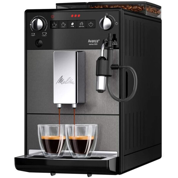 Кофемашина Melitta Cafeo Avanza F270-100 использует для заваривания зерновой кофе. Имеет встроенную кофемолку с 5 степенями помола. Материал изготовления нержавеющая сталь и пластик титанового цвета. Машина подогревает молоко и отлично готовит напитки типа капучино. Вы сможете приготовить множество напитков и даже придумать свой рецепт, а машина сохранит его в своей памяти.