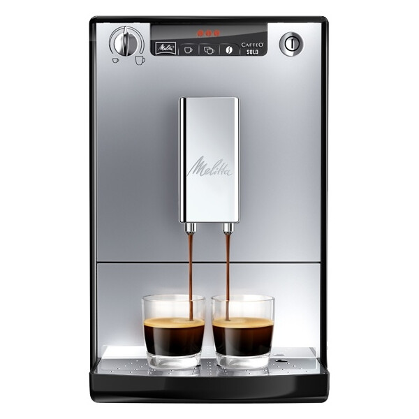 Кофемашина Melitta Caffeo Solo E 950-103 Silver смачивает кофе горячей водой перед варкой, поэтому готовый напиток имеет более насыщенный вкус и аромат. Камера для жидкости объемом 1,2 л легко снимается для наполнения. Размер порции регулируется механически поворотной ручкой на корпусе. На символьном дисплее с подсветкой отображается основная информация о работе, а также сообщения о необходимости наполнить резервуар с водой или сырьем. Модель предназначена для одновременного наполнения двух чашек, а подставка снабжена возможностью подогрева посуды.