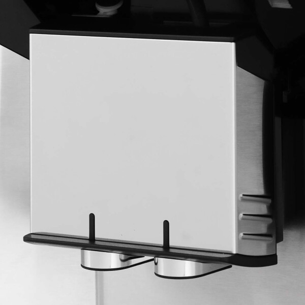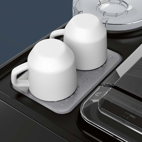 ПОЛЕЗНЫЙ ФУНКЦИОНАЛ Если вы не любите пить кофе в одиночестве, то приготовьте две чашки подряд и угостите кого-нибудь из домочадцев или коллег. Быстро не остывать напитку поможет предварительный нагрев кружек на специальной подставке. Дозатор регулируется по высоте, так что наполнять можно и стаканы.