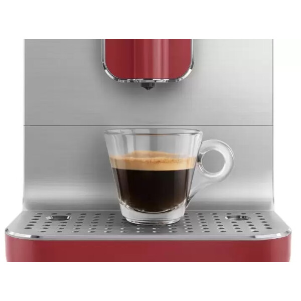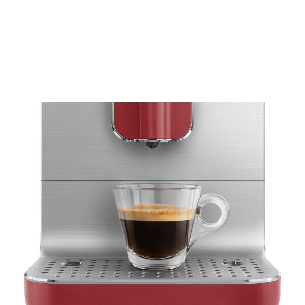 Кофемашина Smeg BCC01RDMEU выполнена в стиле 50-х годов. Корпус изготовлен из красного матового пластика. У кофемашины 7 автоматических программ приготовления кофе: Ристретто, Эспрессо, Чёрный Кофе, Легкий кофе Ристретто, Легкий кофе эспрессо, Кофе лунго, Кофе Американо.
