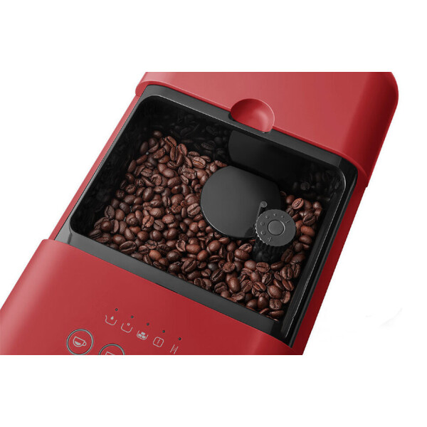 С этой кофемашиной процесс приготовления кофе не вызовет у вас каких-либо затруднений. Засыпать зерна, залить воду в удобный съемный резервуар, выбрать одну из 7 программ - и ваш кофе готов. Кроме этого умная машина даст вам еще несколько плюшек, в именно - предупредит о необходимой чистке фильтра, не включится без воды, или с неправильно установленным заварочным механизмом, сама ополоснет механизм после окончания процесса заварки. Дизайн и цвет будут ярким элементом на вашей кухне.