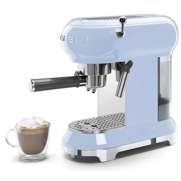 Smeg ECF01PBEU предназначена для приготовления эспрессо и кофейных напитков на его основе в частных домах и квартирах. Модель выполнена в стиле 50-х годов. Корпус изготовлен из окрашенного металла и цветного пластика, основание - из хромированного пластика, держатель фильтра, рамка, капучинатор и поддон для чашек - из нержавеющей стали.