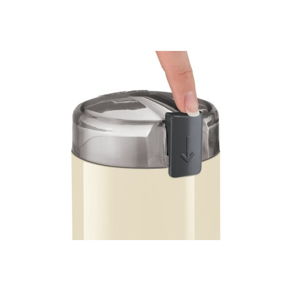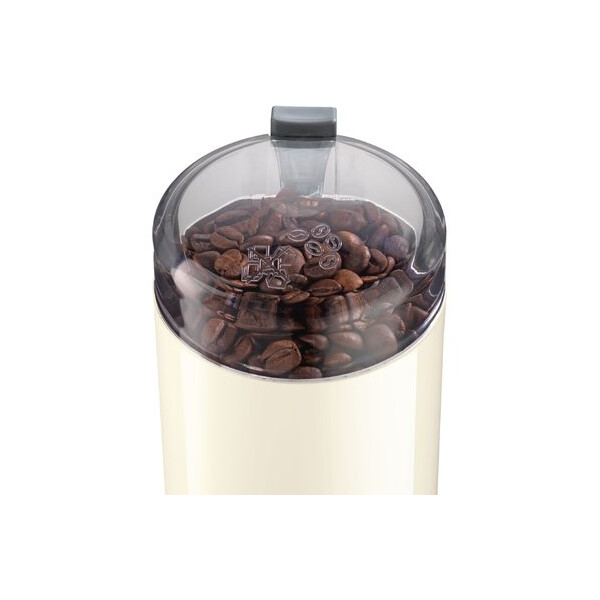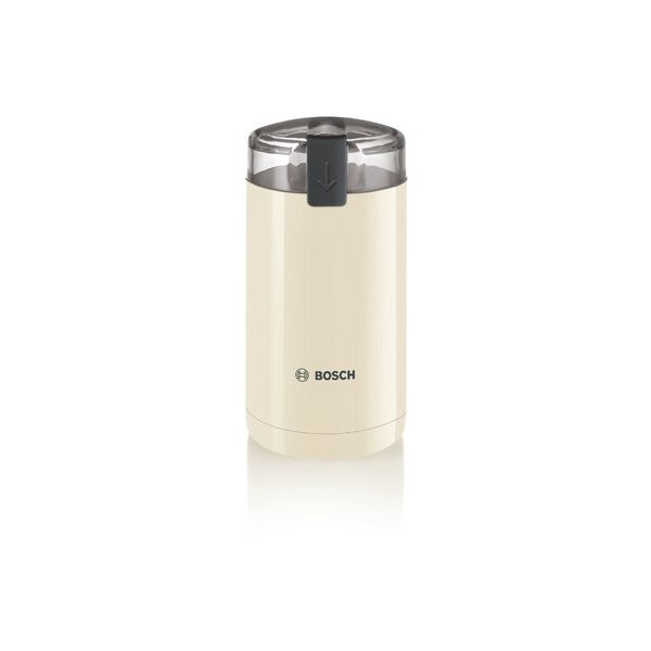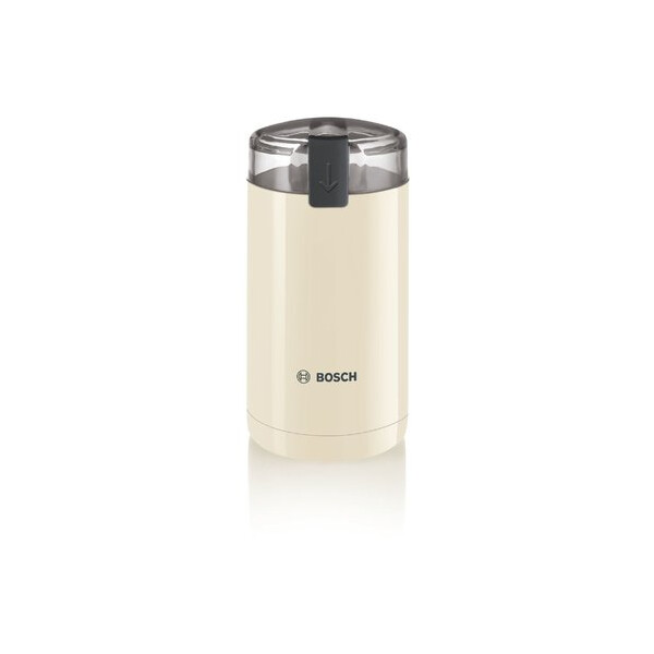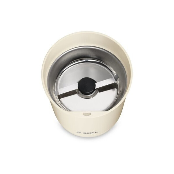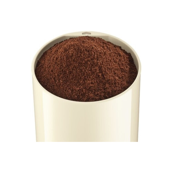 Кофемолка электрическая Bosch TSM6A017C в бежевом корпусе выполнена в форме колбы: такой дизайн устройства будет удобен в процессе пользования. Для измельчения зерен модель использует ротационный нож, лезвия которого изготовлены из нержавеющей стали. Это является залогом качественного и точного помола. Кофемолка является компактным приспособлением, ее размеры составляют 9x9x17 см, что позволяет установить прибор в любом уголке вашей кухни.Помол зерен при помощи кофемолки Bosch TSM6A017C возможен только при закрытой крышке. Когда крышка снята, срабатывает блокировка включения. Кнопка на корпусе устройства способствует безопасному выключению. За один раз прибор справляется с измельчением 75 г зерен кофе, что позволит из этого количества приготовить довольно много напитка. Мощность кофемолки достигает 180 Вт.