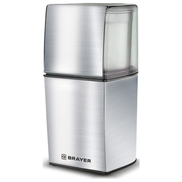 Кофемолка Brayer BR1181 мощностью 200 Вт имеет 2 ножа из нержавеющей стали для мягких и твердых продуктов. Корпус и чаша также выполнены из нержавеющей стали. Работа осуществляется только при закрытой крышке. Имеется отсек для хранения шнура.