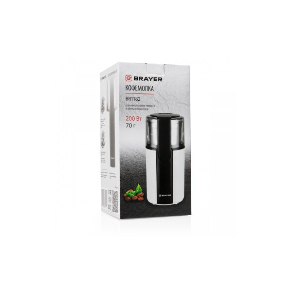 КофемолкаBRAYERBR-1182 техника, которая пригодится всем любителям натурального кофе. С ее помощью можно измельчить нужное... ещевам количество зерен, не оставляя продукт впрок. Ведь даже при должном хранении кофе впитывает влагу и теряет свой богатый аромат.