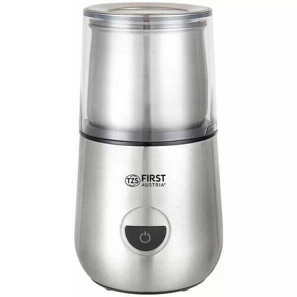 Кофемолка First FA-5486-1 мощностью 200 Вт подходит для измельчения кофейных зерен и специй. Вместимость емкости составляет 100 г, чего достаточно для приготовления до 12-14 чашек кофе.