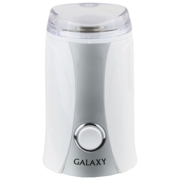 Кофемолка электрического типа Galaxy GL0905 представлена в стильном серебристо-белом дизайне ударопрочного пластикового корпуса, благодаря которому гармонично впишется в кухонный интерьер. Прибор оснащен ротационным ножом, осуществляемым помол кофейных зерен. Предельно допустимая доза для помола составляет 65 грамм.