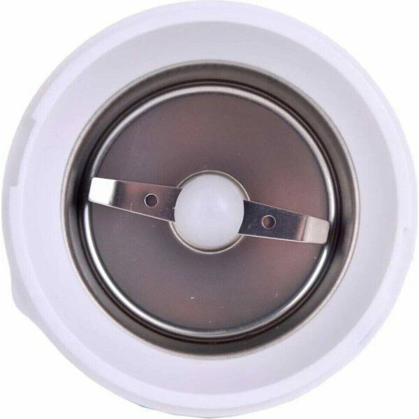 Кофемолка электрическая Magnit RMG-2610 с элегантной серо-белой расцветкой корпуса оснащена ротационным ножом, эффективно справляющимся с помолом кофейных зерен.