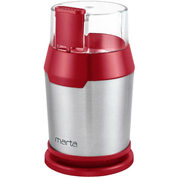 Безопасная кофемолка Marta MT-2168 с корпусом и прочным съемным ножом из нержавеющей стали не деформируется, не ржавеет, не подвержен коррозии, легко моется и имеет максимально длительный срок службы.