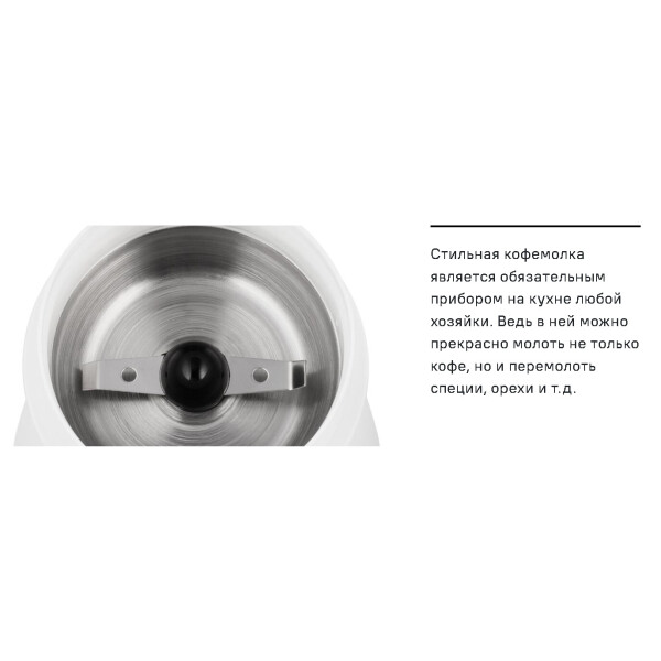 Кофемолка имеет современный дизайн и компактный размер, что позволит без труда разместить ее на любой кухне.