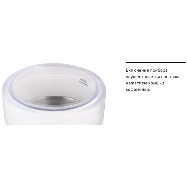 Включение прибора осуществляется простым нажатием крышки кофемолки