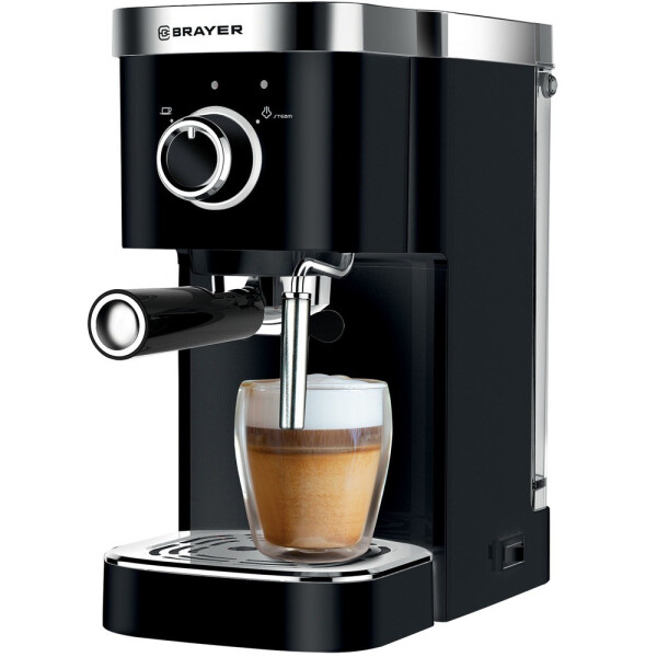 Рожковая кофеварка Brayer BR1100 имеет мощность 1500 Вт и давление помпы 15 бар, благодаря чему крепкий эспрессо готовится в ней достаточно быстро. Напитки готовятся при помощи этого устройства из молотого кофе. Паровой капучинатор, предусмотренный в этой модели, позволит побаловать себя и своих близких чашечкой капучино или латте.