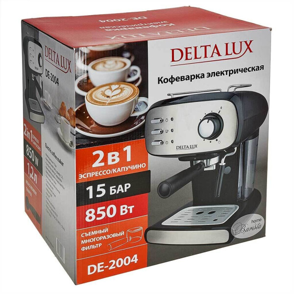 Кофеварка DELTA LUX DE-2004 - устройство для приготовления кофе в бытовых и аналогичных условиях. Основное отличие рожковой кофеварки заключается в высоком давлении, под которым пар попадает в рожок, благодаря этому напиток становится максимально насыщенным и ароматным. С помощью рожковой кофеварки можно приготовить не только эспрессо, но и множество других популярных напитков на его основе, таких как капучино, латте и т.д.