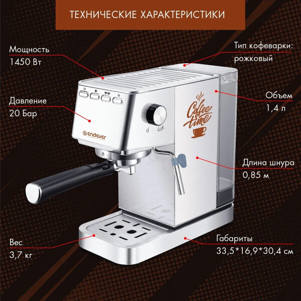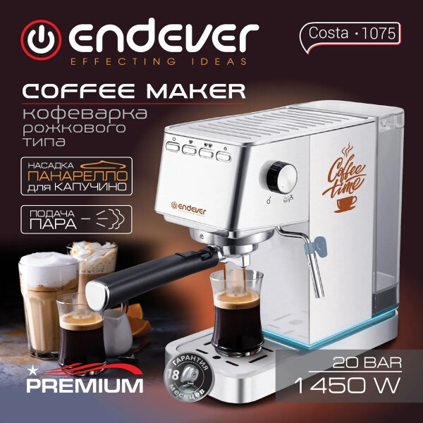 Кофеварка рожкового типа ENDEVER Costa-1075- Ваш личный домашний бариста!