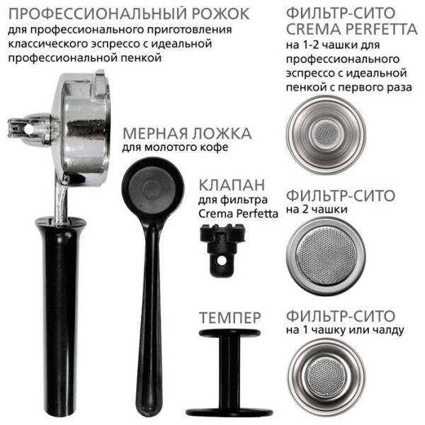 Профессиональная группа и холдер обеспечат вкуснейший кофе, такой как вы ожидаете получить в кофейне. Профессиональный герметичный держатель фильтра гарантирует вкусную насыщенную пену.