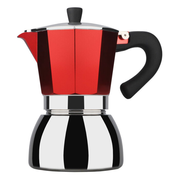 Яркая кофеварка, выполненная в смелом дизайне. Надёжная и технологичная. Подходит для всех плит, включая индукционные. Стильный корпус изготовлен из качественного алюминия и нержавеющей стали.