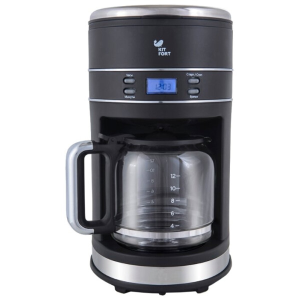Капельная кофеварка Kitfort КТ-704 готовит ароматный кофе одним нажатием кнопки. Таймер отложенного старта позволяет запрограммировать момент включения кофеварки. С вечера залейте в резервуар воду, засыпьте в фильтр молотый кофе и установите таймер, а утром, проснувшись, наслаждайтесь ароматом свежезаваренного кофе. Функция автоматического отключения обеспечивает безопасное использование прибора и экономию электроэнергии. По окончании приготовления кофеварка перейдет в режим подогрева. Подогревная платформа, на которой стоит кофейник с готовым кофе, будет горячей в течение 2 часов, затем кофеварка выключится. Кофеварка оборудована противокапельной системой — затвором, останавливающим подачу кофе при вынимании кофейника из кофеварки. Вы можете налить кофе в чашку, не дожидаясь окончания приготовления. Панель управления оснащена жидкокристаллическим дисплеем с подсветкой и удобными кнопками со световыми индикаторами. Кофеварка предназначена для приготовления кофе дома или в офисе.