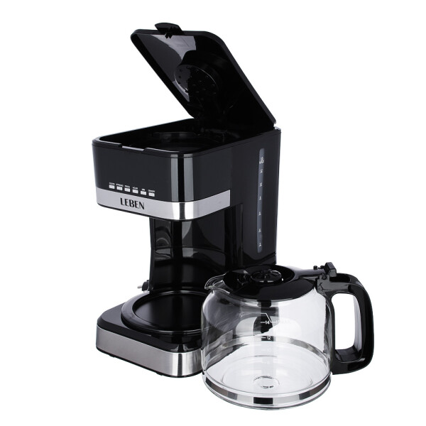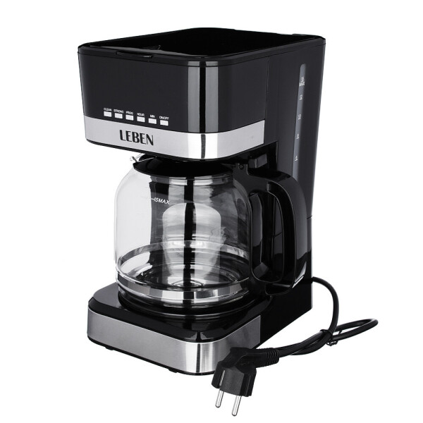 Капельная кофеварка Leben приготовит ароматное кофе без особых усилий для Вас. Гигиеничный материал не меняет вкус напитка и не боится высоких температур. Модель оснащена функцией подогрева. А это значит, что бодрящий кофе дольше остается горячим после приготовления. Чтобы вам было удобно отслеживать количество порций, резервуар для воды имеет деления.