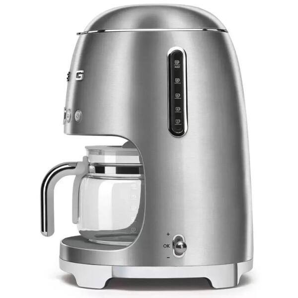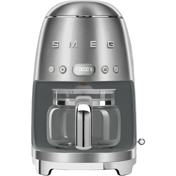 Капельная кофеварка SMEG DCF02SSEU, выполненная в стиле 50-х годов, подчеркнёт индивидуальность интерьера и станет настоящим украшением Вашей кухни в квартире или загородном доме. Предназначена для приготовления кофейных напитков разной крепости. Стеклянный кувшин рассчитан на 10 чашек, оборудован ручкой и крышкой. Корпус изготовлен из окрашенного металла.