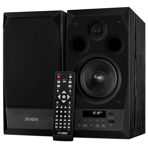 Функционал SVEN MC-10 никого не оставит равнодушным. В ней есть практически все, что можно пожелать от хорошей акустики – удобный пульт управления, чтобы переключать музыкальные треки не вставая с дивана, встроенное радио, информативный дисплей, возможность воспроизведения музыки с SD-карт и USB flash, беспроводная передача звука по Bluetooth – в этом случае вы сможете проигрывать музыку со своего смартфона или планшета, при этом акустика будет поддерживать устойчивую связь с мобильным устройством на расстоянии до 10 м.