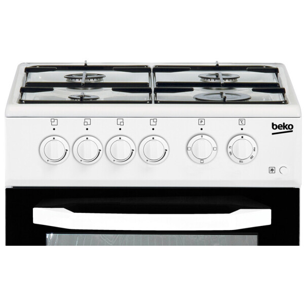 Отдельностоящая комбинированная плита шириной 50 см оснащена 4 газовыми конфорками с кнопкой электроподжига и электрическим духовым шкафом со статической системой нагрева.