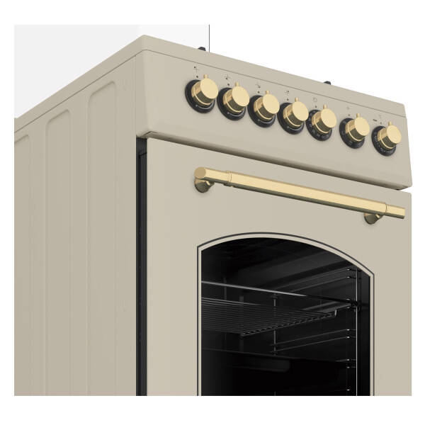Узкая комбинированная плита шириной 50 см оснащена 4 газовыми конфорками и электрическим духовым шкафом. Газовая поверхность плиты имеет автоматический электроподжиг, чугунные решетки и систему газ-контроля конфорок, которая автоматически прекращает подачу газа, если пламя случайно потухнет, что гарантирует полную безопасность.