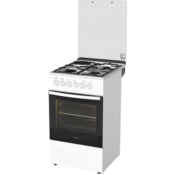 Плита комбинированная DARINA F KM341 323 W представляет ряд высококачественной кухонной техники энергоэффективности класса А. Устройство практично в эксплуатации. Имеет 4 конфорки: три газовых и одна — электрическая. Что бы привести их в рабочее состояние достаточно воспользоваться функцией электроподжига. Машина не требует особо изощренных методов очистки. Достаточно использовать стандартные средства и эмалированная стальная поверхность будет сиять как и в первый день.